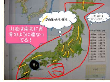 その山地は,日本列島を南北に,背骨のように連なっています。