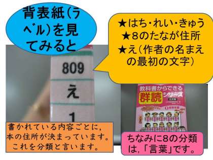 迷わず本の住所から探し出せるように,図書館をいっぱい利用しましょう★