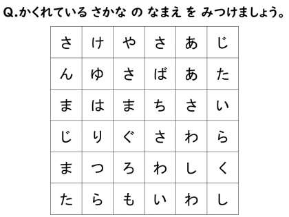 した↓にある もじさがし の なか にも 『 い わ し 』が かくれていますよ。ほかにも かくれているので みつけてくださいね。