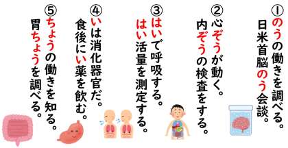 (1)脳・臓・肺・胃・腸の音読み・訓読みを声に出して読んでみましょう。