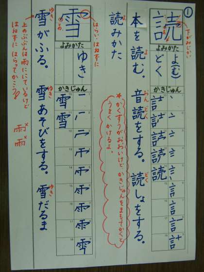 こくごのかだいをするときに,あたらしいかん字がたくさん出てきて書くのがすこし難しそうですね。正しい書きじゅんで,お手本をよく見て書くとうまく書けますよ。二年生になるとすかくすうがおおくなって,むずかしい字がたくさんあるけど,「やればできる!!」ゆっくりていねいによく見て書いてみよう。