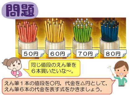 これまでにも式の中に○や△を使ったことがあったと思います。