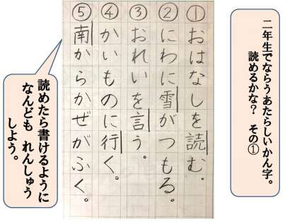 なんかいも読んでしっかりとおぼえましょう。おぼえたら書けるようにれんしゅうしてみましょう。