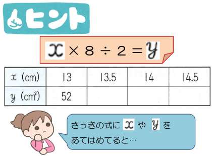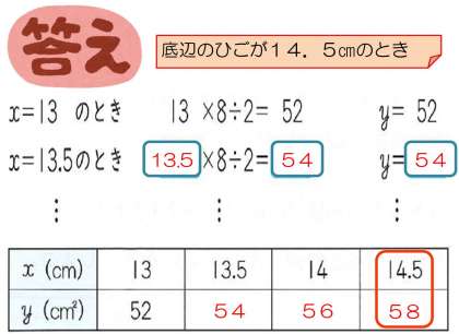 表に整理すると,変わり方のきまりもみつけやすいです。