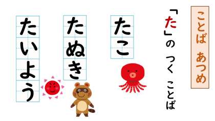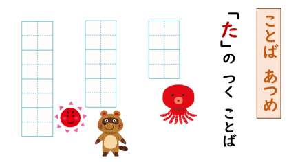 「た」の つく ことばを あつめましょう。