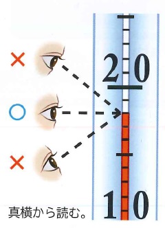 温度計はななめから見たりせず,正面から読むようにしましょう!