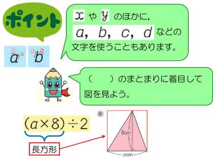 算数では,xやyだけでなくa・b・c・dなども使います。