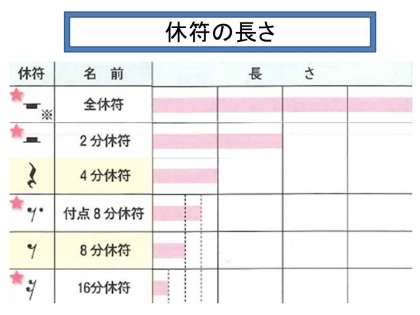 音符と同じように休符(休む記号)にも長さがあります。