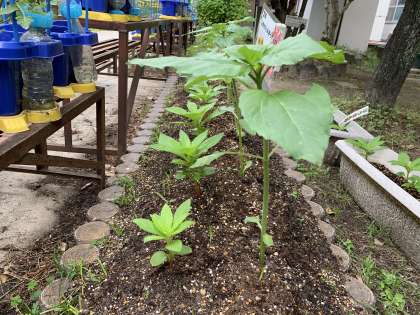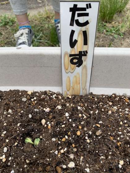 大豆とオクラの芽が出ました!