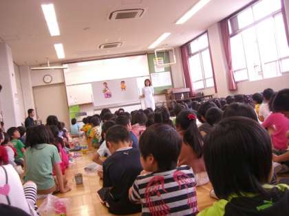 その話を聞き,「えー,私の口のなかにも虫歯菌のうんちがあるのー?」「しっかりみがこう!」と一生懸命歯磨きをしていました。