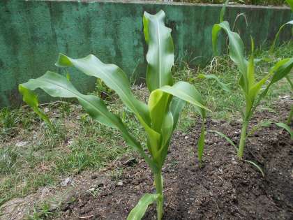 畑のとうもろこしが育っています。