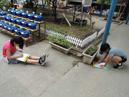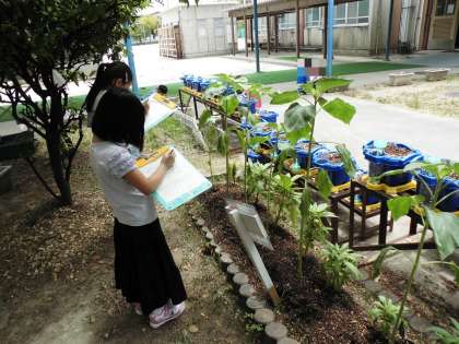 学校で生長中の植物を観察しました。
