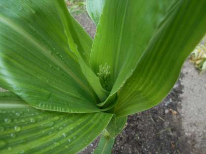 上からのぞいてみると,はっぱとはちがうものが見えてきました。これは何だろう?