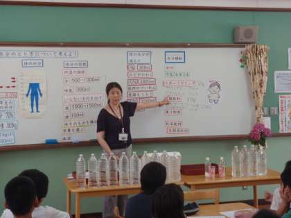 学習する中で,水分補給によいといわれているスポーツドリンクに入っている砂糖の量の多さにみんな驚いていました。