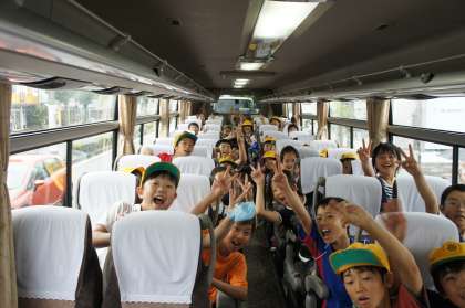 5年生163名,欠席者は0。全員がそろっての出発です。