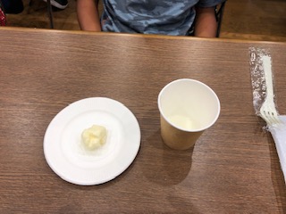 生クリームが入ったボトルをひたすら振りました。完成したバターはパンにつけて食べました。