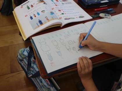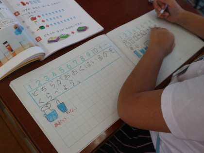 算数の「おおきさくらべ(1)」の学習で水の量り方について学習しました。