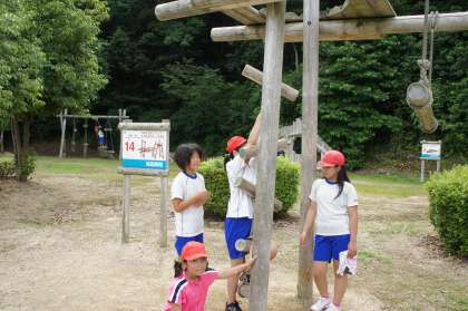 アスレチックでは,汗をかきかき,体全身を使って遊びました。