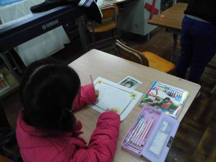 その後,ゲームやさんに来ていただいた先生方にお礼の手紙を書きました。来てもらってうれしかったこと,『ありがとう』の気持ちなど,自分の思いをふり返ると,自然と笑顔があふれてきました。