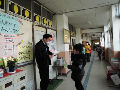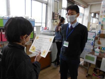 書いた手紙をそれぞれ届けに行きました。ドキドキしながら手紙を渡すと,「楽しかったよ。」と言葉をかけてもらい,またまた笑顔になりました。