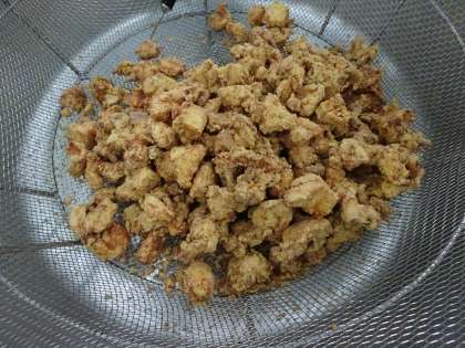 スパイシーチキンは,下味にカレー粉を使い,衣をつけて油で揚げました。