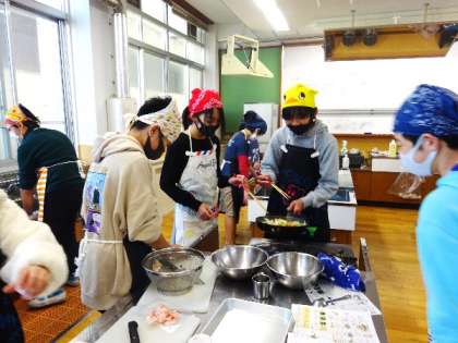 調理しながら片付けをするように伝えると,しゃきしゃきと手際よく動いていました。
