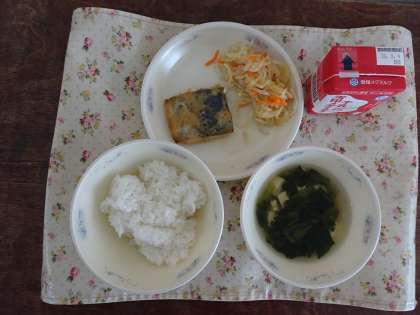 今日の献立は,ごはん・牛乳・さわらの西京焼き・紅白なます・すまし汁です。