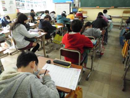 子どもたちは100点を目指して一生懸命取り組んでいました。