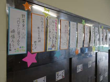 給食週間の取組の1つとして,学級で給食標語を作成しました。