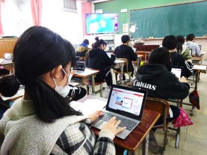 教室に一人1台のタブレットPCが設置されたので,自分の席でどんどん進めています。