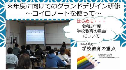 令和3年度に向けて,学校教育の重点について確認し,ロイロノートを活用したグランドデザイン研修を実施しました。