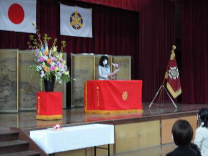 入学式では,校長先生のお話や担任の先生の紹介がありました。1年生は,しっかりと前を向いてお話を聞いていました。1年生の姿はとても微笑ましく,式場はとてもあたたかい雰囲気でした。