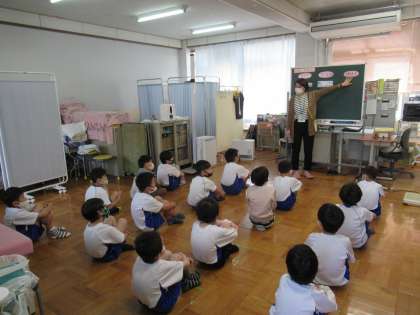 計測の前に,保健の先生から保健室のルールについてお話がありました。