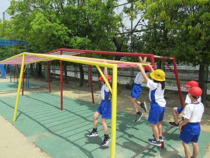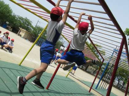 体育では,遊具の使い方を確認しながら「ゆうぐあそび」をしました。