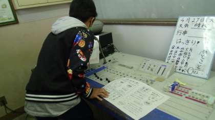 全校児童に流れる放送を緊張しながらも上手に読むことができました。