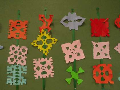 折り紙を折ってから,はさみで細かく切れ込みを入れて,開いてみると,,,