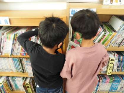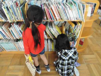 図書館へ行くと,たくさんの本があり,わくわくしながら,読んでみたい本を選んでいました。「つぎは,どの本をかりようかな」と図書館へ行くのがとても楽しみになったようです。