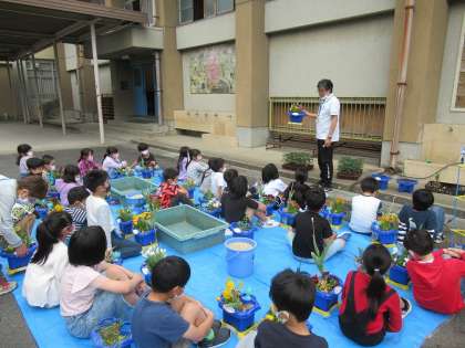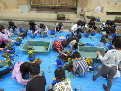 生活科「ぐんぐんそだて おいしいやさい」の学習で,ミニトマトの苗を植えました。