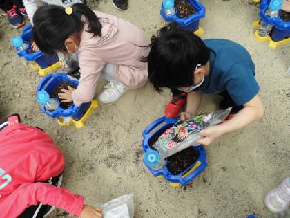 子どもたちは,「どんな色のお花が咲くのか楽しみだな。」「はやく芽が出てほしいな。」とアサガオの成長をとても楽しみにしていました。