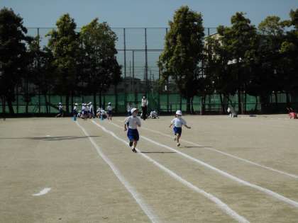 よーいどん!の合図で,力いっぱい走り切っていました。