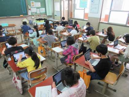 今日は,GIGA端末を使って国語と算数の練習問題に取り組みました。