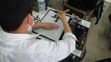 静かに落ち着きながら,1画1画に思いをこめて書いていました。