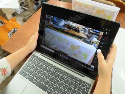 ログイン後,画面に筆箱や手を映して,写真撮影もしました。