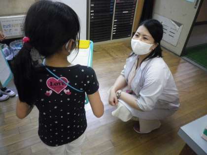 今日は,理科室・事務室について調べたい子どもたちがインタビュー