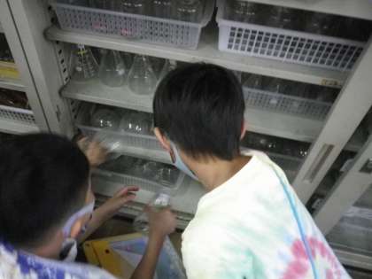 インタビューの後は,理科室や準備室の道具を見せてもらうことができ