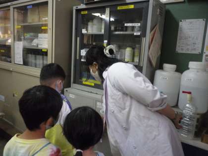 子どもたちは,初めて見る道具や実験器具に歓声をあげていました。