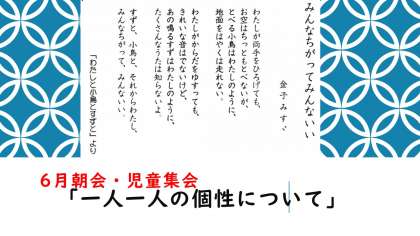 6月の朝会にて,「一人一人の個性について」のお話をしました。