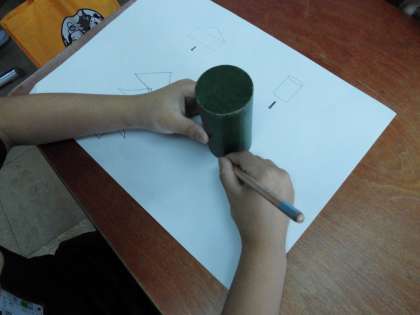 今回は,いろいろな かたちを紙に写して,絵を描きました。