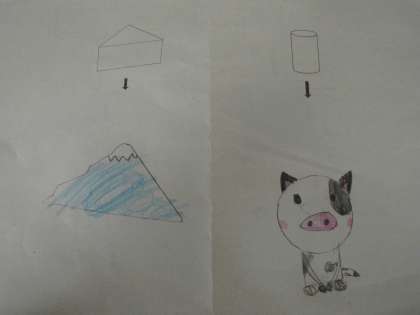 と,形の特徴を考えながら,いろいろな絵を描くことができました。