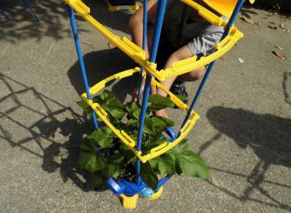 みんなで話し合って,もっと元気に大きくなるように,支柱を立てることにしました。